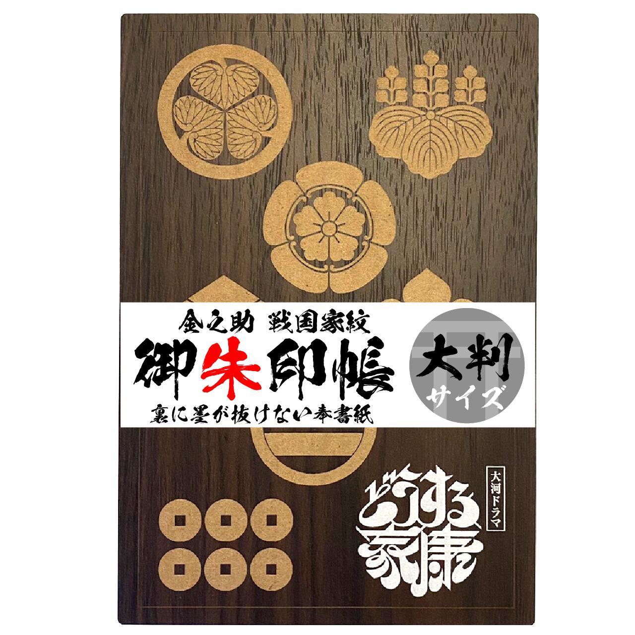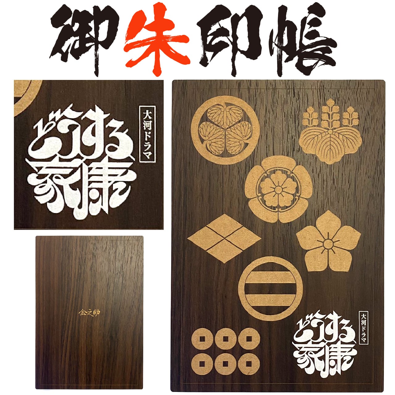 大河ドラマ どうする家康 ライセンス商品 木製戦国家紋 御朱印帳 ご朱印帳【大判木製 御朱印帳 7773】 三つ葉葵(みつばあおい)7家紋 タイトルロゴ | 金之助商店 御朱印帳 御城印帳 切り絵御城印 切り絵御朱印 OEM